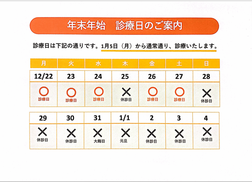 年末年始の診療日について