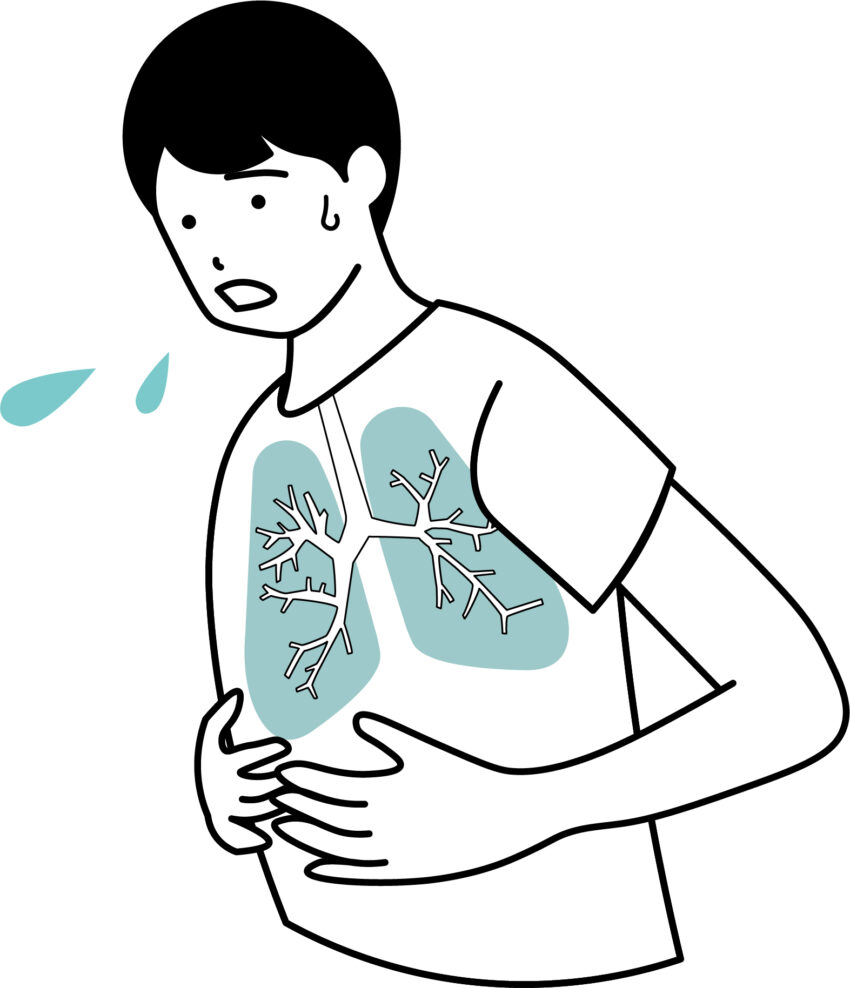 中高年の方で、慢性の咳や痰、労作時の息切れ(運動をした際に息切れが起こる)場合、長期にわたる喫煙歴がある場合に、COPDを疑います。